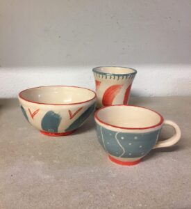 Pour le modelage et pour le tour, les différentes techniques de décor seront présentées: dessins avec engobes, patines, textures, estampage… et enfin après première cuisson l’émaillage.