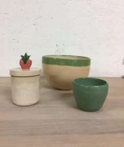– Cours de tour (Coralie) : initiation ou perfectionnement au centrage de la terre, au tournage, puis tournassage.